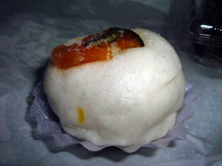 子供でもおいしく食べれると思います。かぼちゃのお饅頭。 饅頭を割ると、中にかぼちゃの餡が入っています。