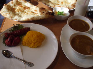 店にはオリジナルカレーもあるので、そちらも頼んでみたいところですね。「ティカ」「シークカバブ」「サフランライス」もついていました。 やっぱりナンが大きいですね。そして美味しいです。
