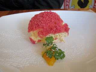 嫁が食べたこの可愛らしいデザートは「イチゴ風味のティラミス」です。