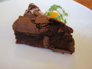 非常にフワフワした食感で、イチゴの酸味がたまらない感じでした。こちら、私の頼んだ「クルミ入りのガトーショコラ」です。