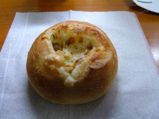 グラタンパンですが、あっさり目でおいしいですよ。石焼きグラタンの断面図♪ くるみパン(100円)