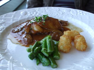 マイルドな味わいで程よい甘みが美味しい。彼女はパンを選択しました。 バターです。 こちらは彼女の頼んだメイン料理で「チキンのソテー シャンピニオンソース」です。