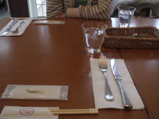お客の層が非常に幅広いのが、フレンチ系の店としては非常に珍しいです。食事を注文すると、スプーンやフォーク、ナイフなどが運ばれてきました。