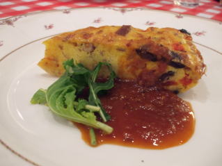 私は3150円のコースを、彼女はレディースランチを、先輩は2100円のコースを頼みました。こちらはコースメニューの前菜だった「スパニッシュオムレツ」です。