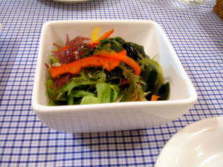 ピザ生地は薄手のもの。私が頼んだ「パエリアセット」(580円)についてきた「プチサラダ」です。