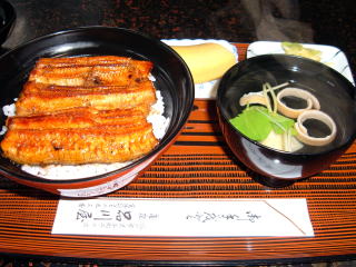 1000円で、「うな丼」「お新香」「お吸い物」「デザート」の4品が付いてきます。