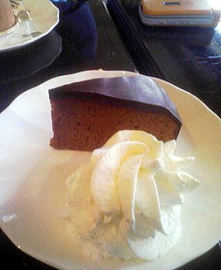 私と彼女が頼んだのは、私がケーキに「ザッハトルテ生クリームつき」(480円)。食事として「ベーコンオリーブキッシュ」(780円)。
