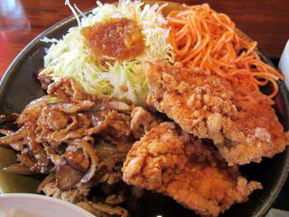 こちらは「焼肉と若どりの竜田揚」(750円)です。