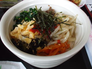 マイルドな味わい。でも、ピリ辛さがアクセント♪こちらの漬物も美味しかったです! ミニビビンバ。