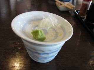 囲炉裏端を囲んだおじさん達が頼んだのを見たところ、「けんちん蕎麦」を"つけけんちん蕎麦"で頼んでいました。"つけ"と最初から投入しているバージョンと両方あるようです。けんちんも"農村地域"の蕎麦屋さんらしくて良いですね。