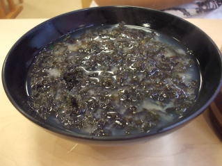 "あら"と言いながら、具材たっぷりのお味噌汁でした……お得!こちらは嫁が頼んだ味噌汁で、「磯海苔汁」です。やはり器が大きい!