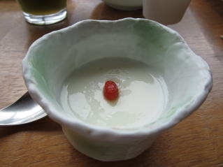 「杏仁豆腐」です。プルプルとろとろしていて、味もクリーミーで濃厚。美味しいです。