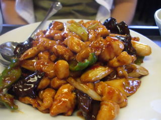 ちなみに、ご飯とスープがお替り自由なので、私はお替りも頼みました。さらに、漬物とデザートの杏仁豆腐です。 こちらは嫁の注文した「四川風鶏肉の辛口炒め定食」(780円)です。