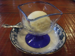 麺は太めでモチモチした食感でした。食後、「バニラアイス」(210円)で締めにしました。